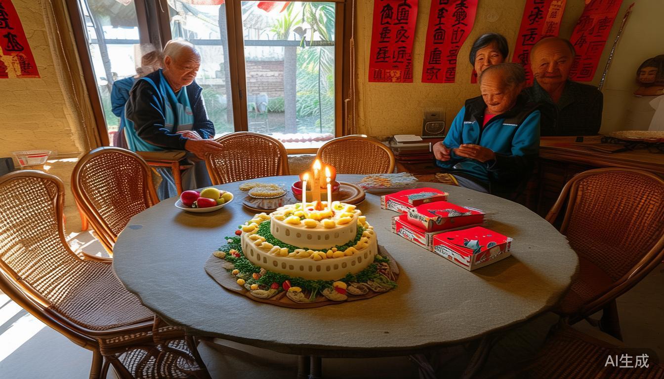 最为贴心温暖是最后的集体庆生环节 这时轻快温馨旋律的《祝你生日快乐》歌响起。大家一起欢快热情地营造出极为温馨欢怡氛围 志愿者精心准备好了精美绝伦生日蛋糕 寿星老人们满脸笑意齐齐在心底郑重许下真挚美好心愿。接着志愿者将饱含浓郁温馨情谊切好一块一块的蛋糕,挨个儿送到了在场每位老人手中。随后 村里老人家团团围在一起 在果香四溢伴随着月饼香甜芬芳怀抱里头愉快品着味道 品尝大锅饭共话家常 人人间相互送出美好诚挚节日上祝福言语回荡整个场面 和乐融融